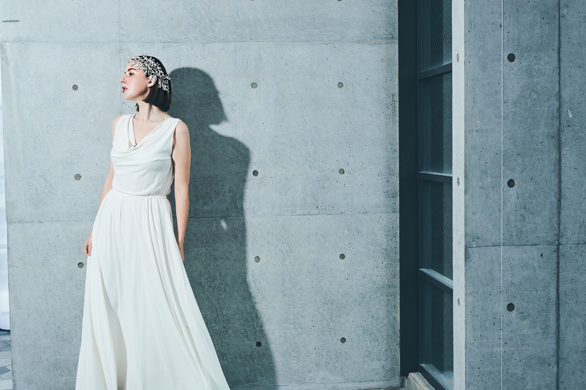 個性的なスタイルや王道なクラシカルウェディングにも合わせやすい大き目のヘッドドレス。